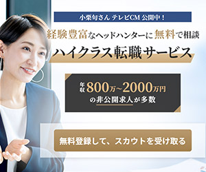 大手/優良企業のスカウトが届く!ハイクラス向けの転職サービス。