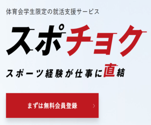 体育会系学生が特別選考を受けられるような求人も紹介頂き、他の学生よりも有利に就職活動を進めることができました。スポーツ経験がある人なら誰でも利用できるみたいなので、一度登録してほしいです。